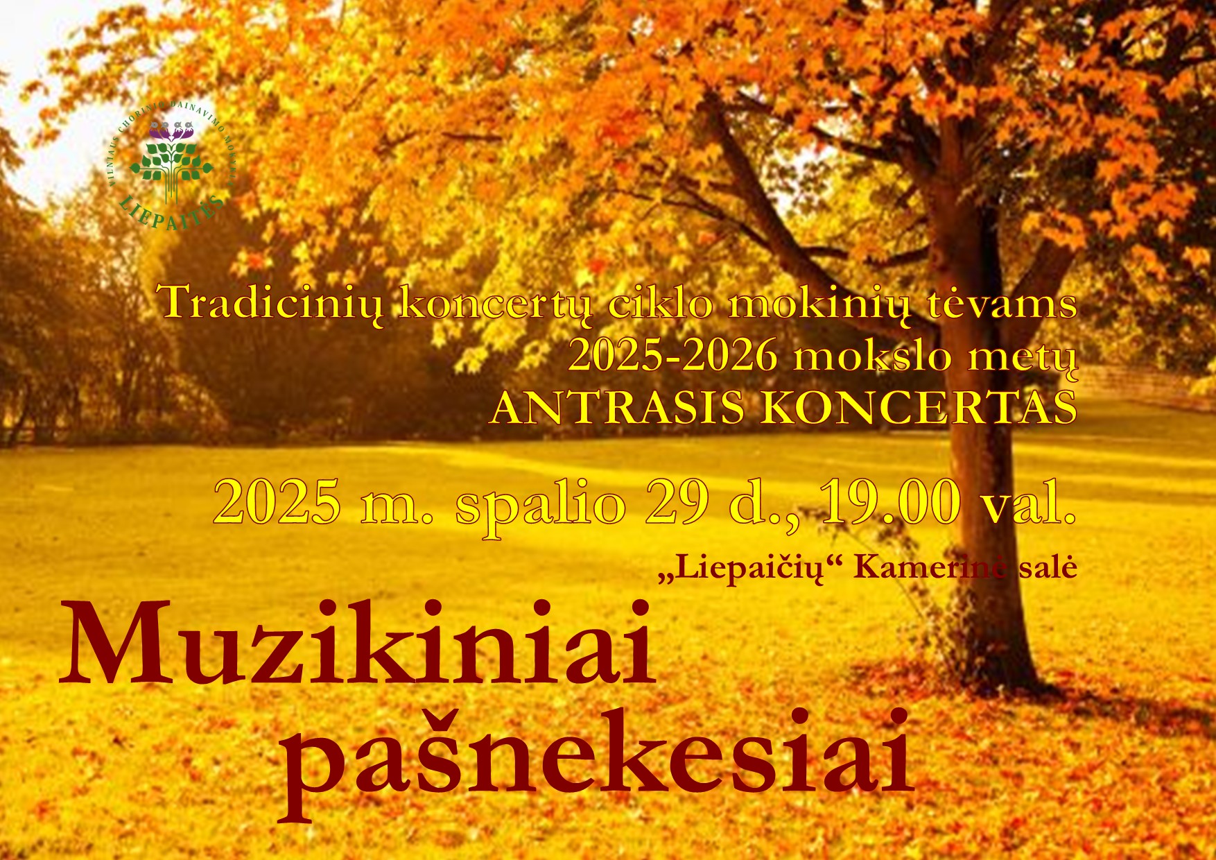 Antrasis 2025-2026 m. m. koncertas vyks 2025 m. spalio 29 d. (trečiadienį), 19.00 val. mokyklos Kamerinėje salėje. Afiša.