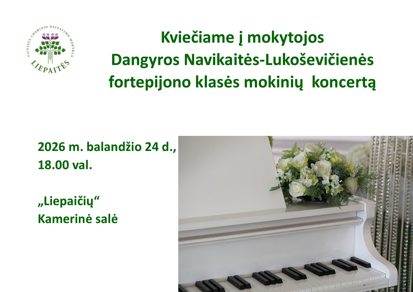 Kviečiame į mokytojos Dangyros Navikaitės-Lukoševičienės fortepijono klasės mokinių  koncertą.