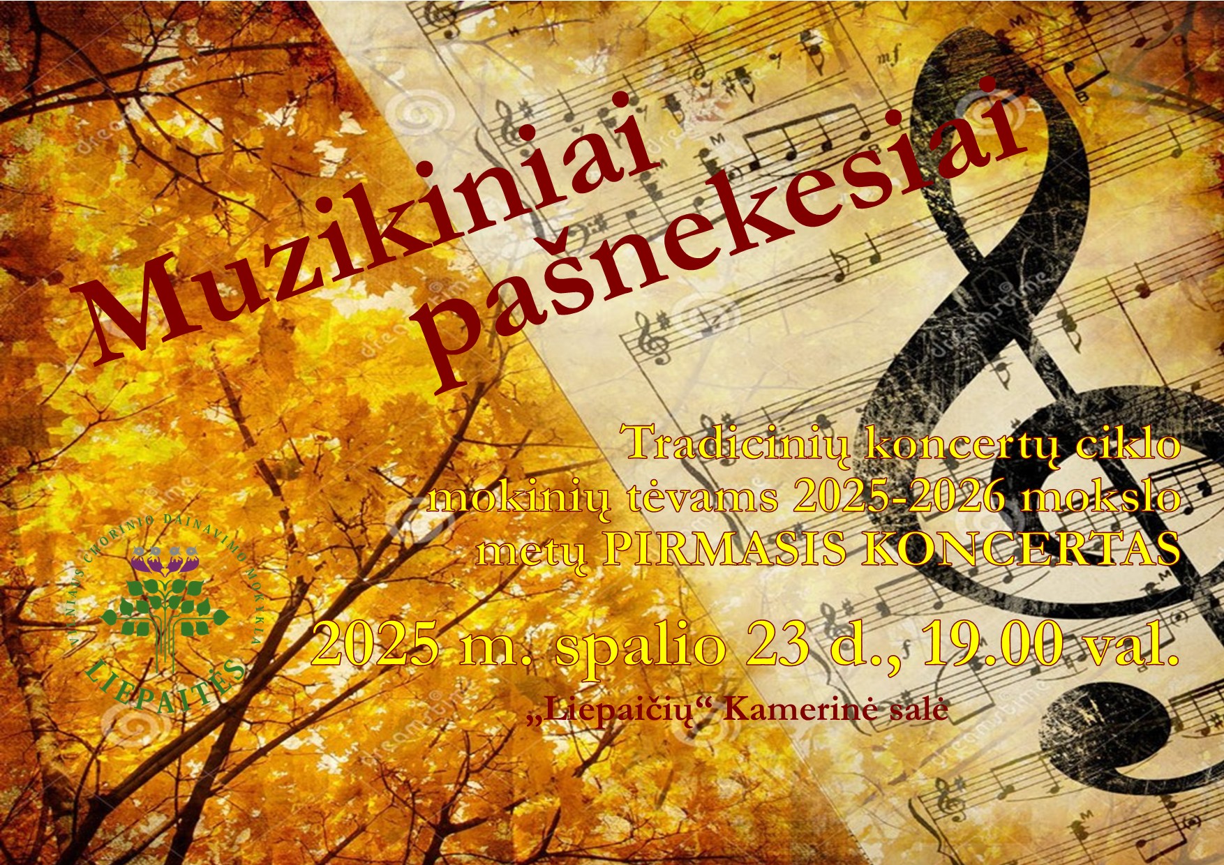 2025 m. spalio 23 d. 19.00 val. mokyklos kamerinėje salėje vyks pirmasis „Muzikinių pašnekesių“ koncertas skirtas mokinių tėvams. Afiša.